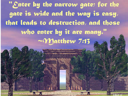 That Christians today do not comprehend the meaning and depth of these words with respect to the need to be truly "born again" -- and attempt to replace the process of rebirth with a philosophical prayer, song and praise of adoration of a God they only vaguely have begun to know, is merely evident of how far we have been turned out of The Way by the fourth century Church of Rome which so altered the essence of the teachings of the New Covenant, that those who have called themselves Christian have wandered in the wilderness of darkness and despair for nearly seventeen hundred years. Ask yourself: Where does it say in the scriptures that one is born again by reciting a prayer? It does not! And the common philosophical re-birth that is practiced today among those who call themselves Christian, has absolutely no basis in biblical fact! When the Jews of a carnal mind asked Jesus when the expected kingdom would come, the very words he spoke angered them because they demonstrated the falseness of their doctrines of belief -- doctrines which are still embraced by carnal Christians today. To their own demise he spoke of a great truth that has been continually ignored by the false prophets and watchers of the people of the simple faith who have permitted themselves to be strongly influenced by the manmade doctrines of the Church of Rome. Jesus said that the kingdom will never come upon the earth in the manner that carnal men predict, because it is “inside of you” (Luke 17:20-21). And to our own detriment today, the process of enduring the next stage of birth that Jesus said was required in order to enter into the Kingdom, cannot be accomplished until the believer endeavors to open the "strait gate" within them.